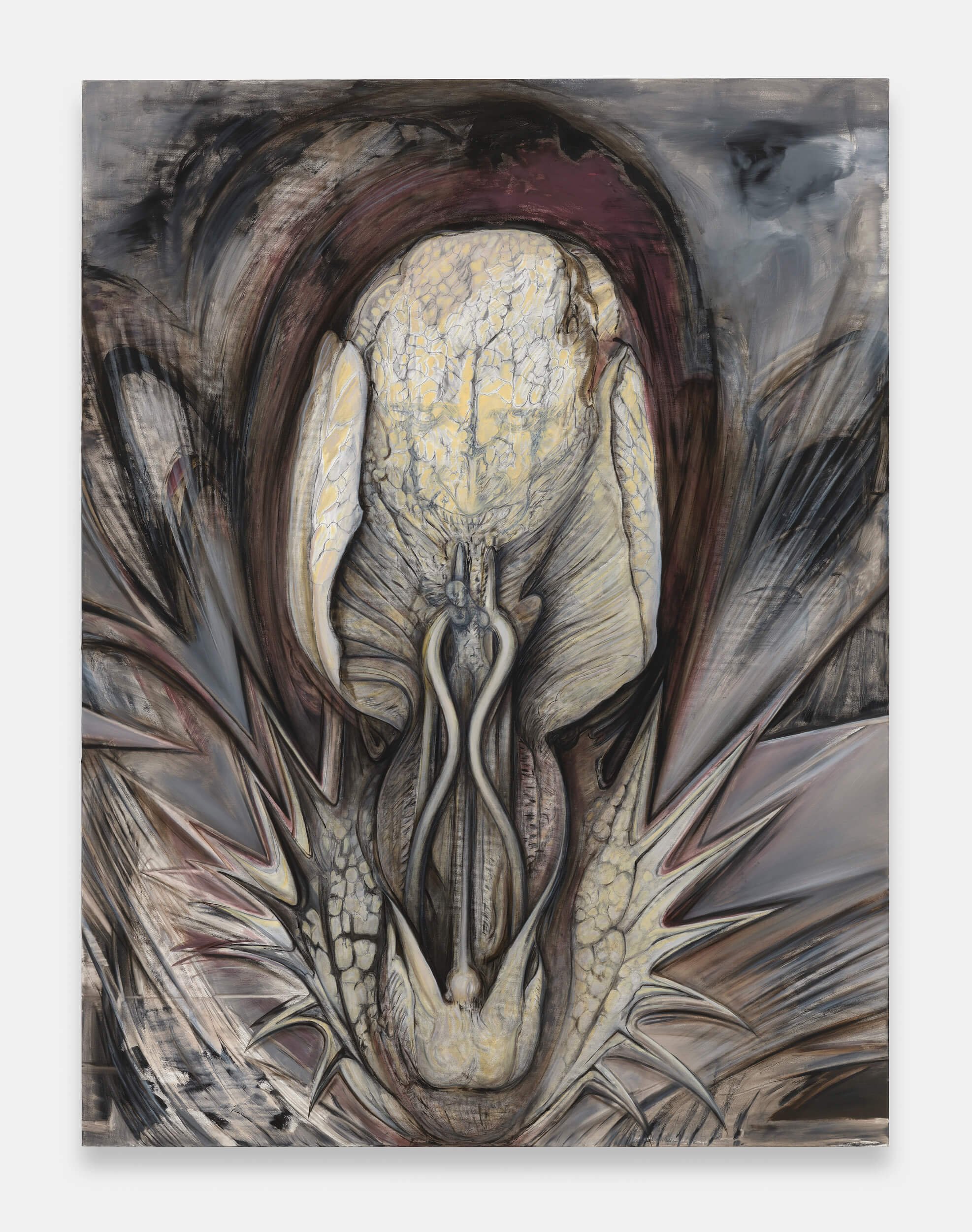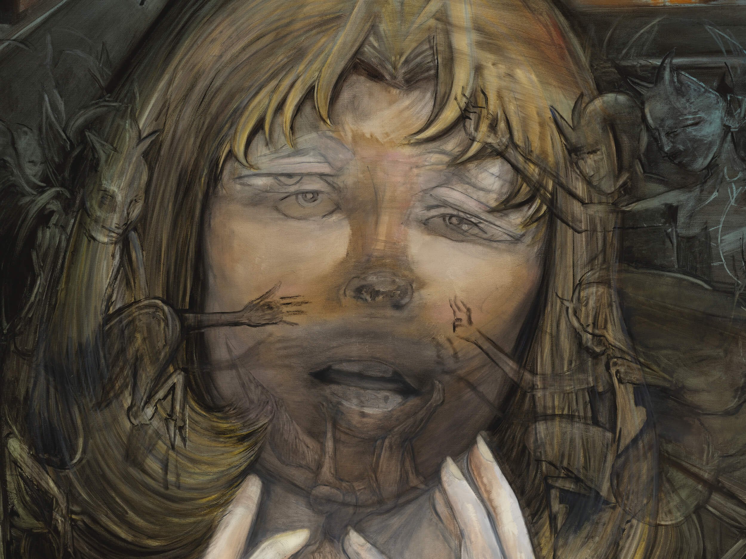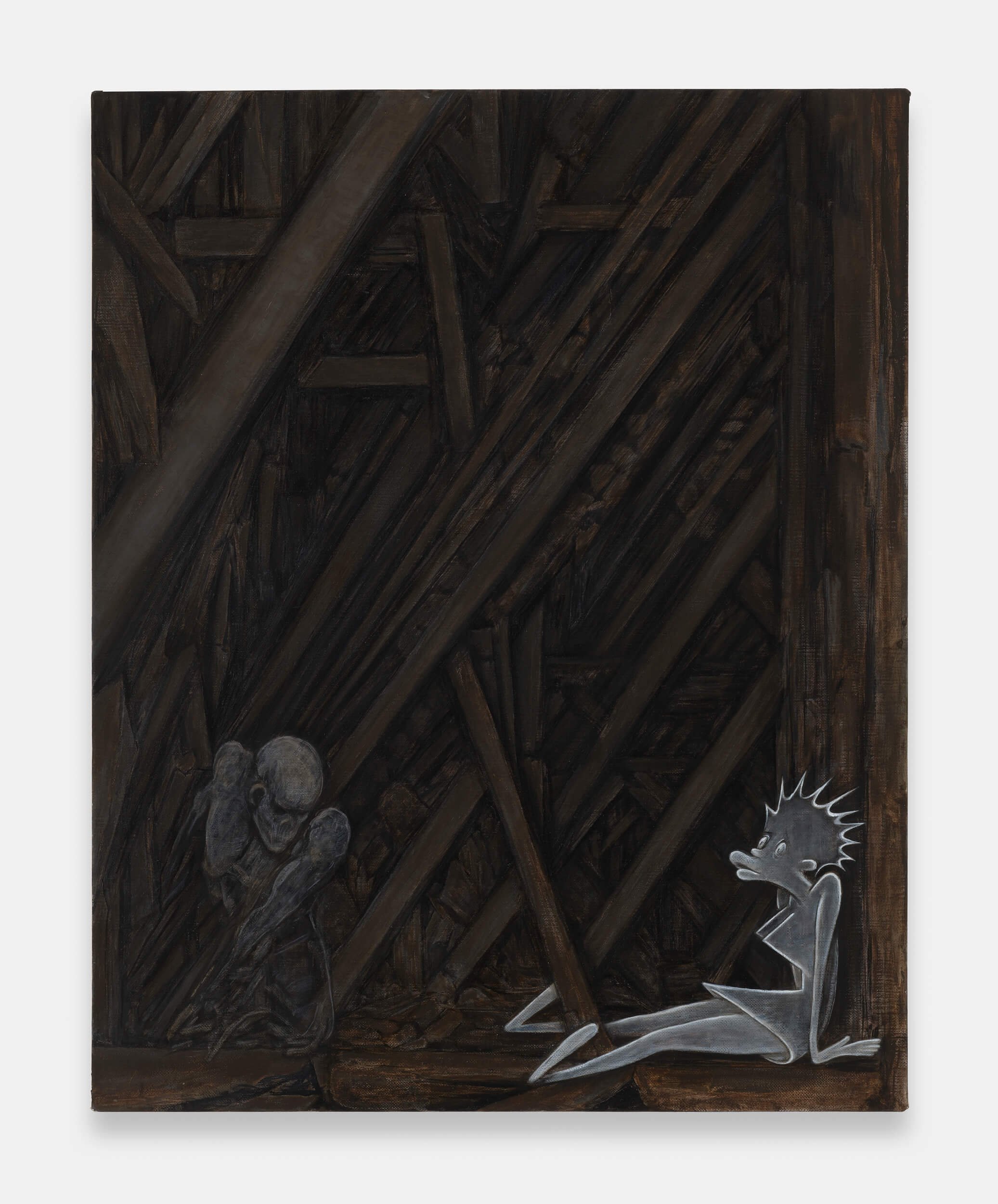 At the Carpenter Center, Fear Corroded Ape gathers Janiva Ellis’s long-gestating “dust bunny” paintings—works held back, reworked, and unruly until now. The exhibition stitches together cartoon figures, art-historical ruins, and half-finished passages into a vision of empires in decline. Ellis uses humor, dissonance, and painterly bravado to expose the myths Western painting has glorified and to fracture them into new, estranged possibilities. The result is an exhibition that finds energy in precarity and meaning in the unfinished.